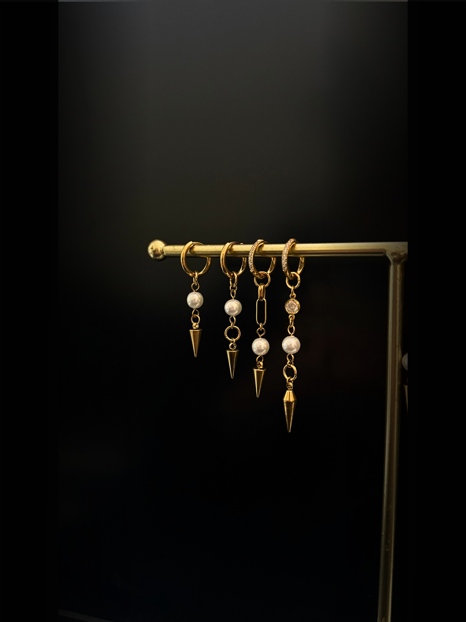 Pearl Spike Sleek Earrings - Gold