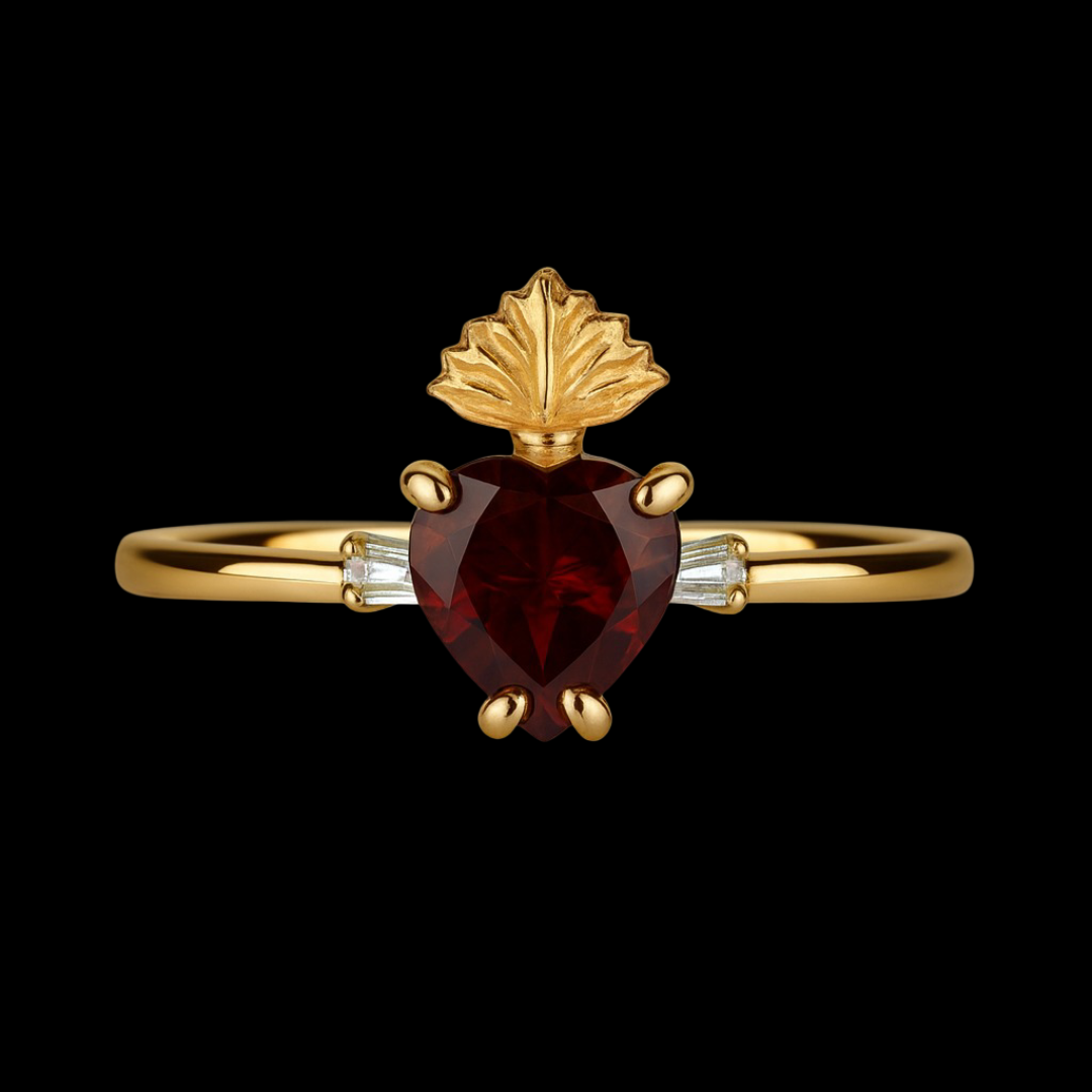 Our Heart Ruby Ring is an exquisite piece featuring a captivating heart-shaped ruby, set in a polished stainless steel band with gold or silver plating. This stunning design adds a touch of timeless elegance and passionate allure, making it the perfect accessory to elevate any look with sophistication and charm.