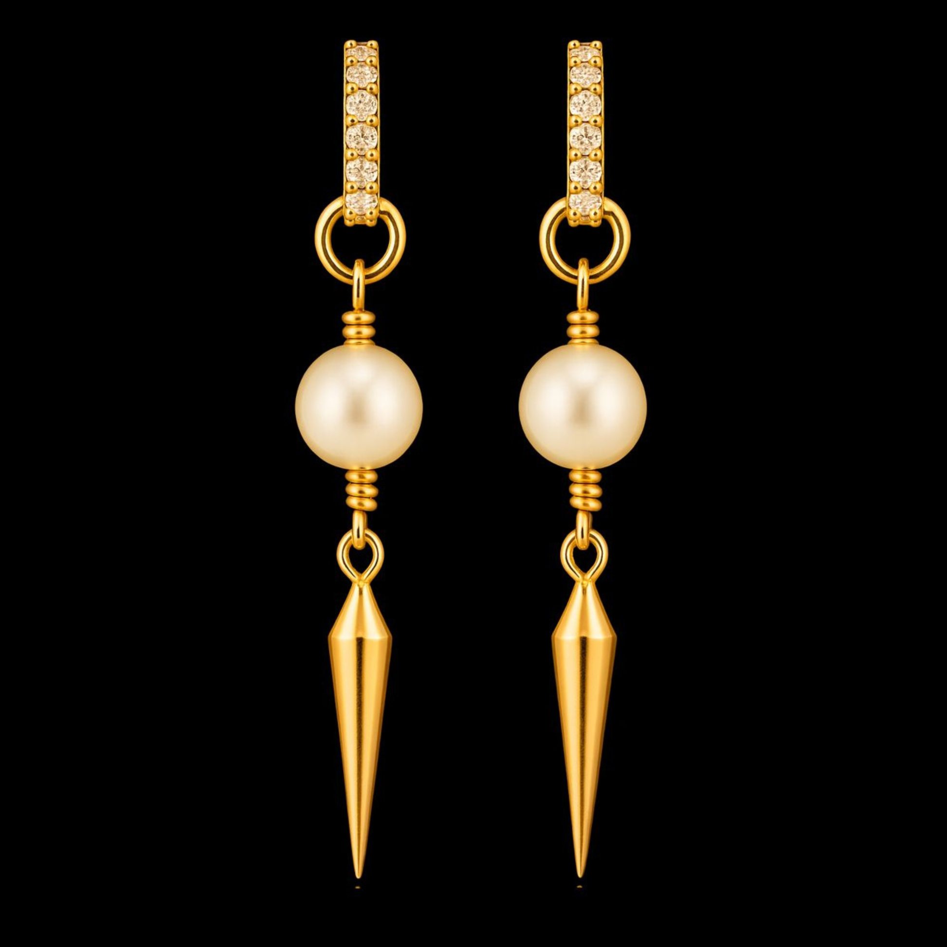 Our Pearl Spike Glow Earrings blend soft elegance with a bold modern twist, featuring a smooth pearl paired with a sleek spike drop that moves beautifully with every step. The shimmering hoop adds an extra touch of sparkle, making these earrings the perfect piece to elevate both everyday looks and special outfits. Sold as a pair for a complete and stylish finish.